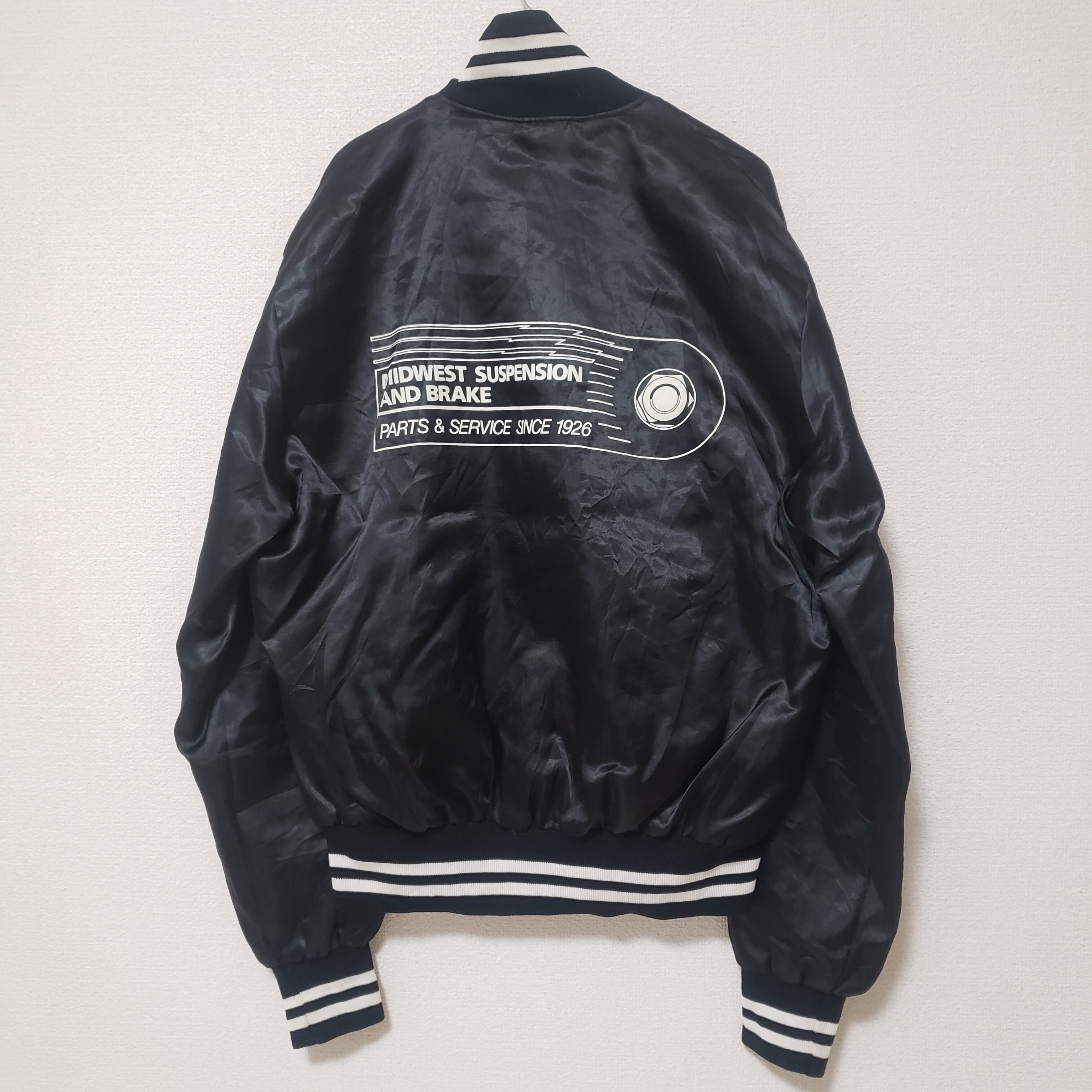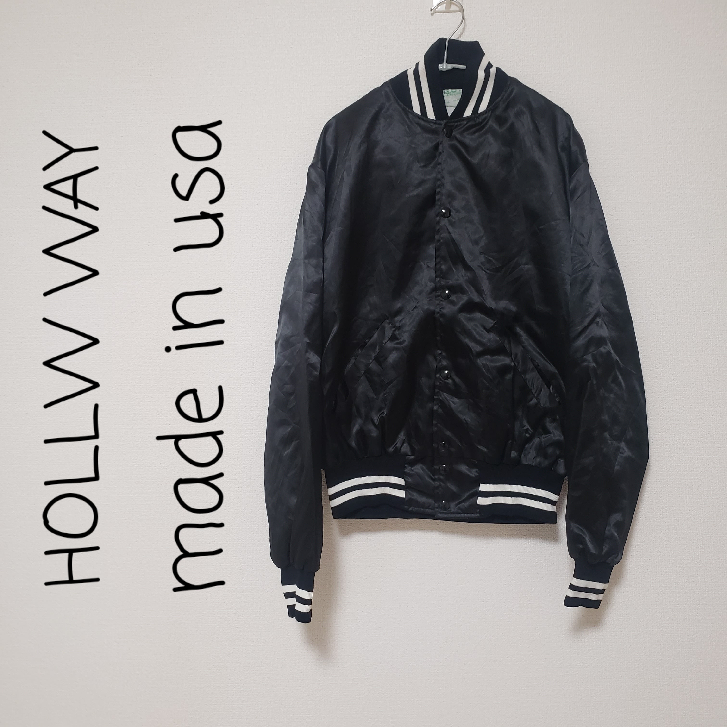 80's~90's HOLLOW WAY バックプリント入り ナイロンスタジアムジャンパー USA製 ブラックボディー サイズM